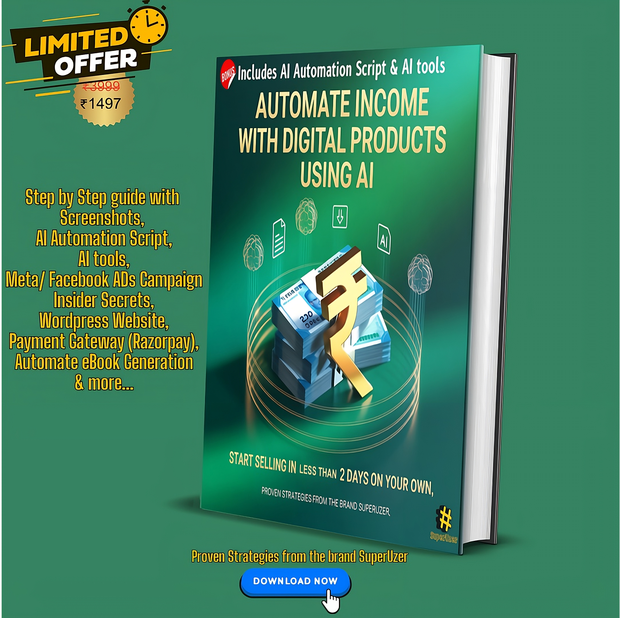 Get instant lifetime access to “Build and Automate Your Digital Product Business” for only ₹1,497 (Regular price ₹3,999).