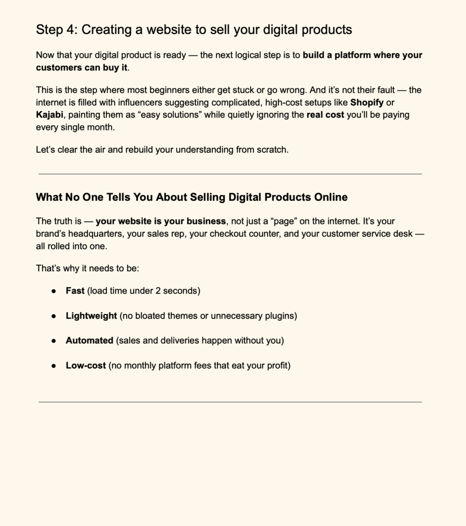 💡 Pro Tip: The key is automation — your website, payments, and deliveries should run on autopilot while you focus on scaling.