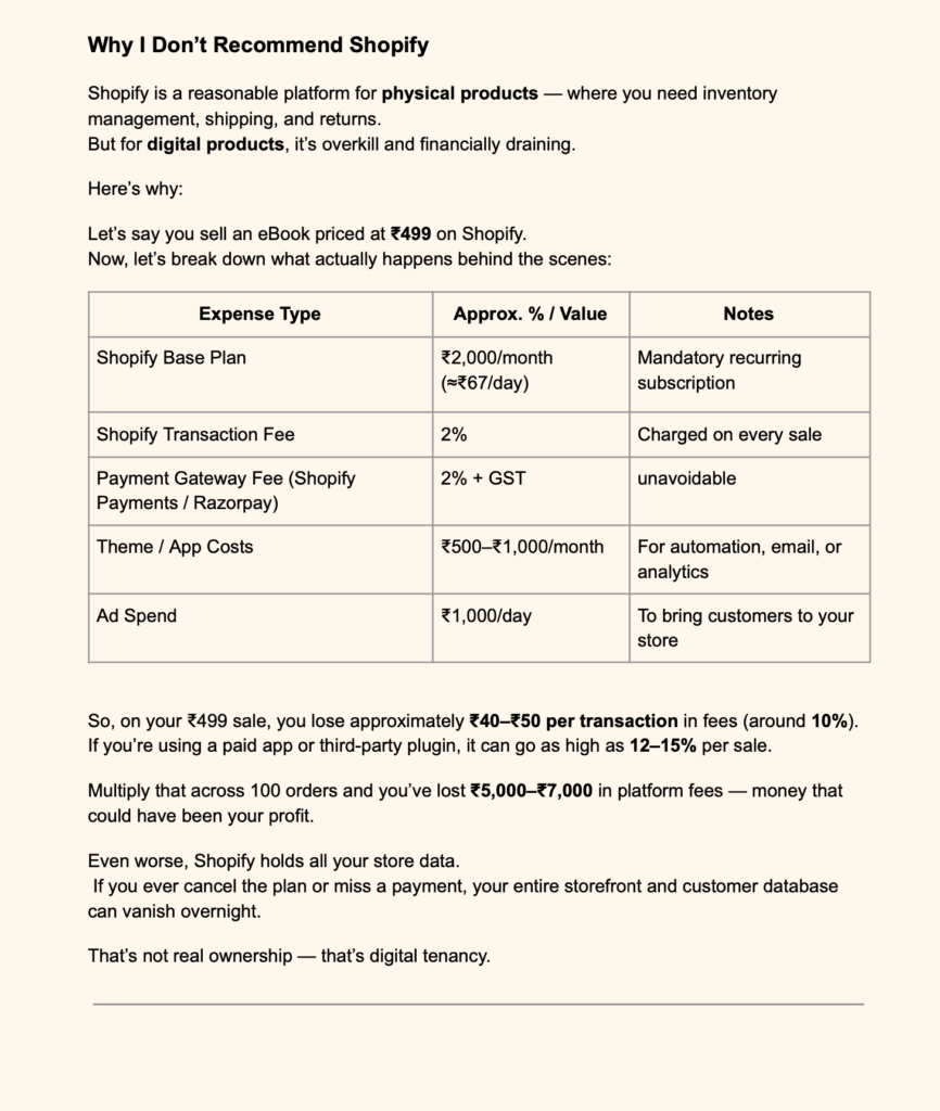 8. 🚫 Avoid Common Mistakes — Why you should skip Shopify and save your margins