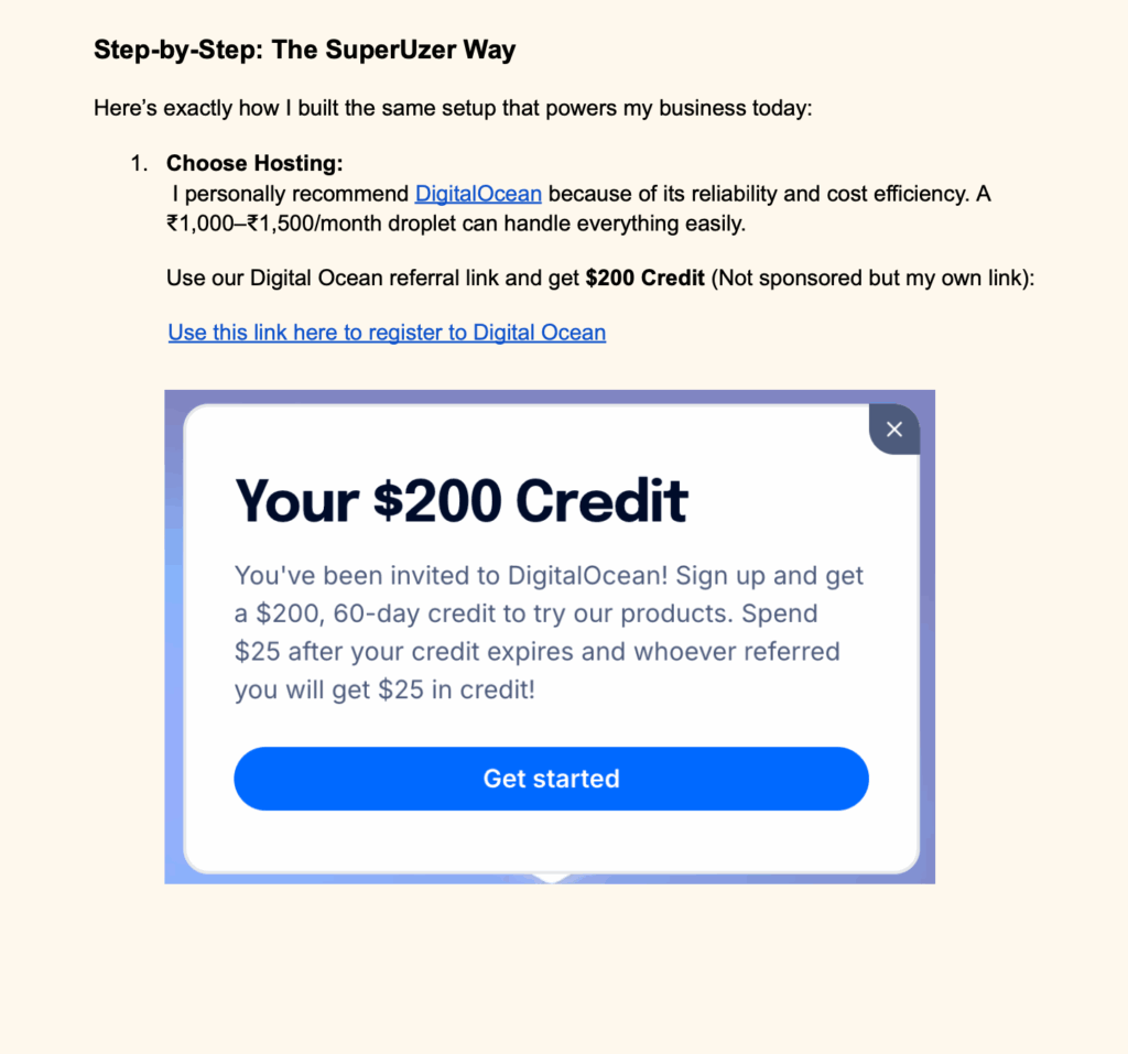 4: $200 Credit from Digital Ocean $200 Credit from Digital Ocean worth ~ ₹20,000
